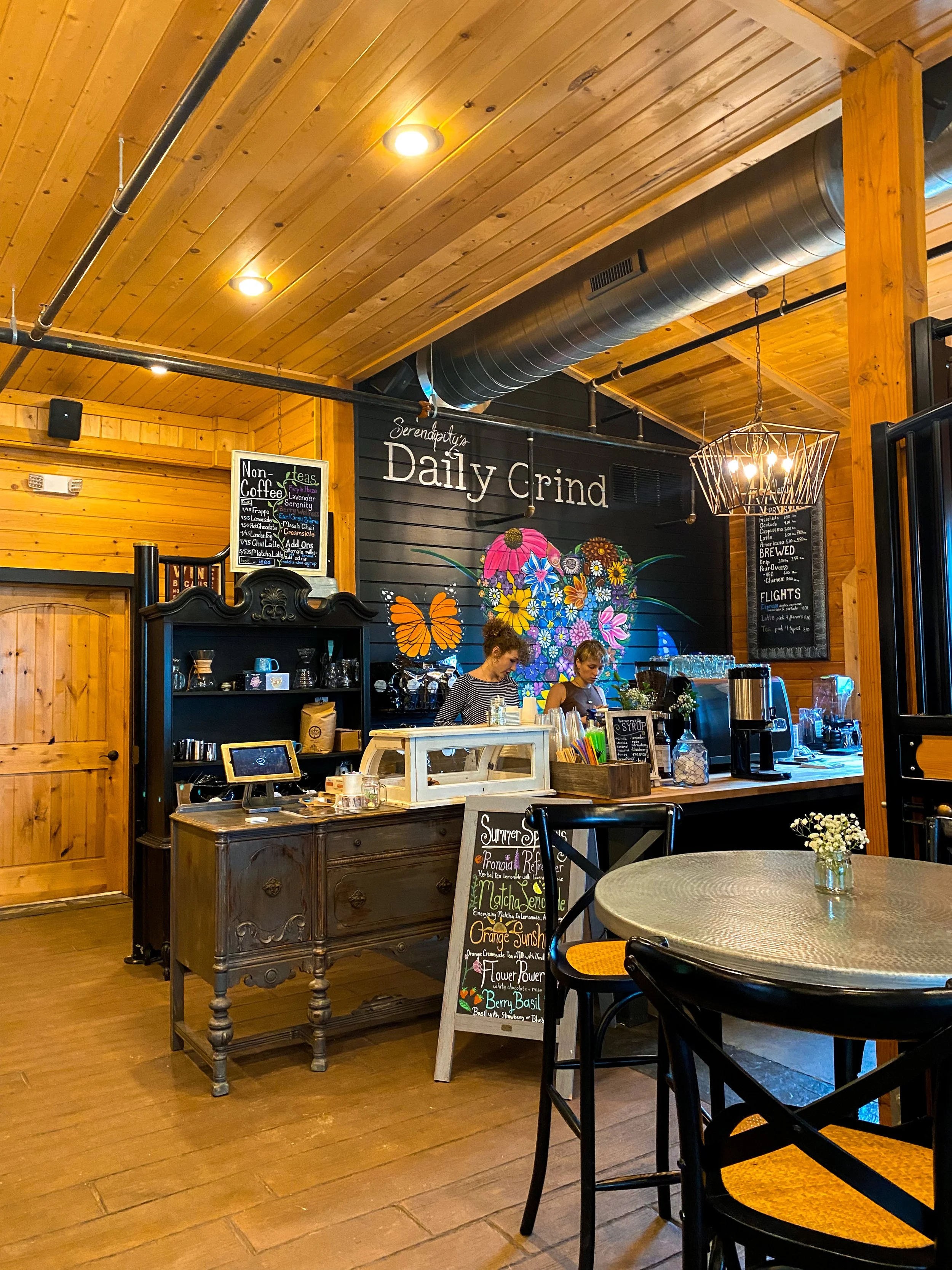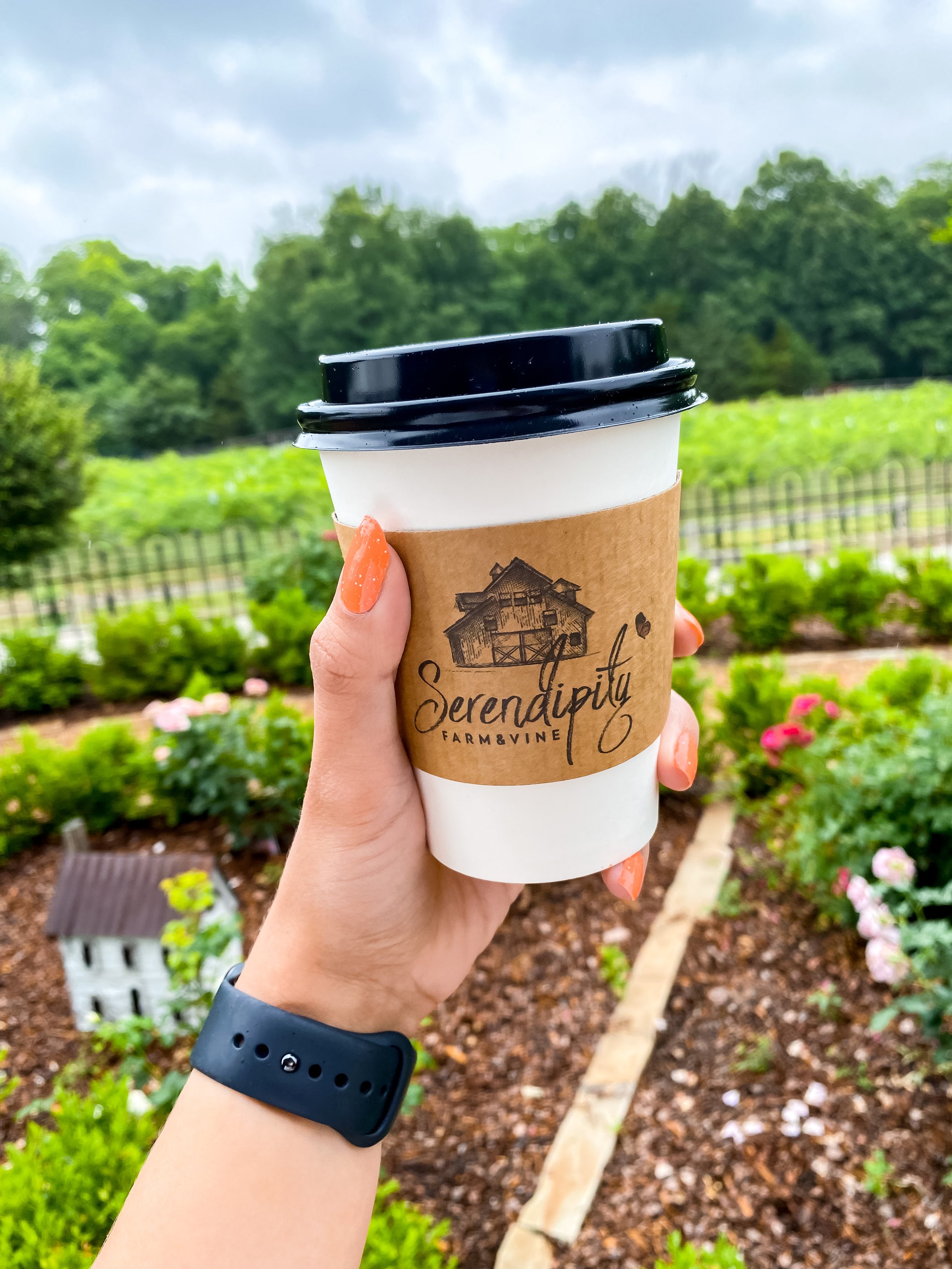We got there around 10am to visit their coffee shop “Serendipity’s Daily Grind” to try before the winery opened at 11am. This was perfect for us because the property is huge, with a beautiful butterfly garden to walk around, farm animals, and a winery pup named Riesling.