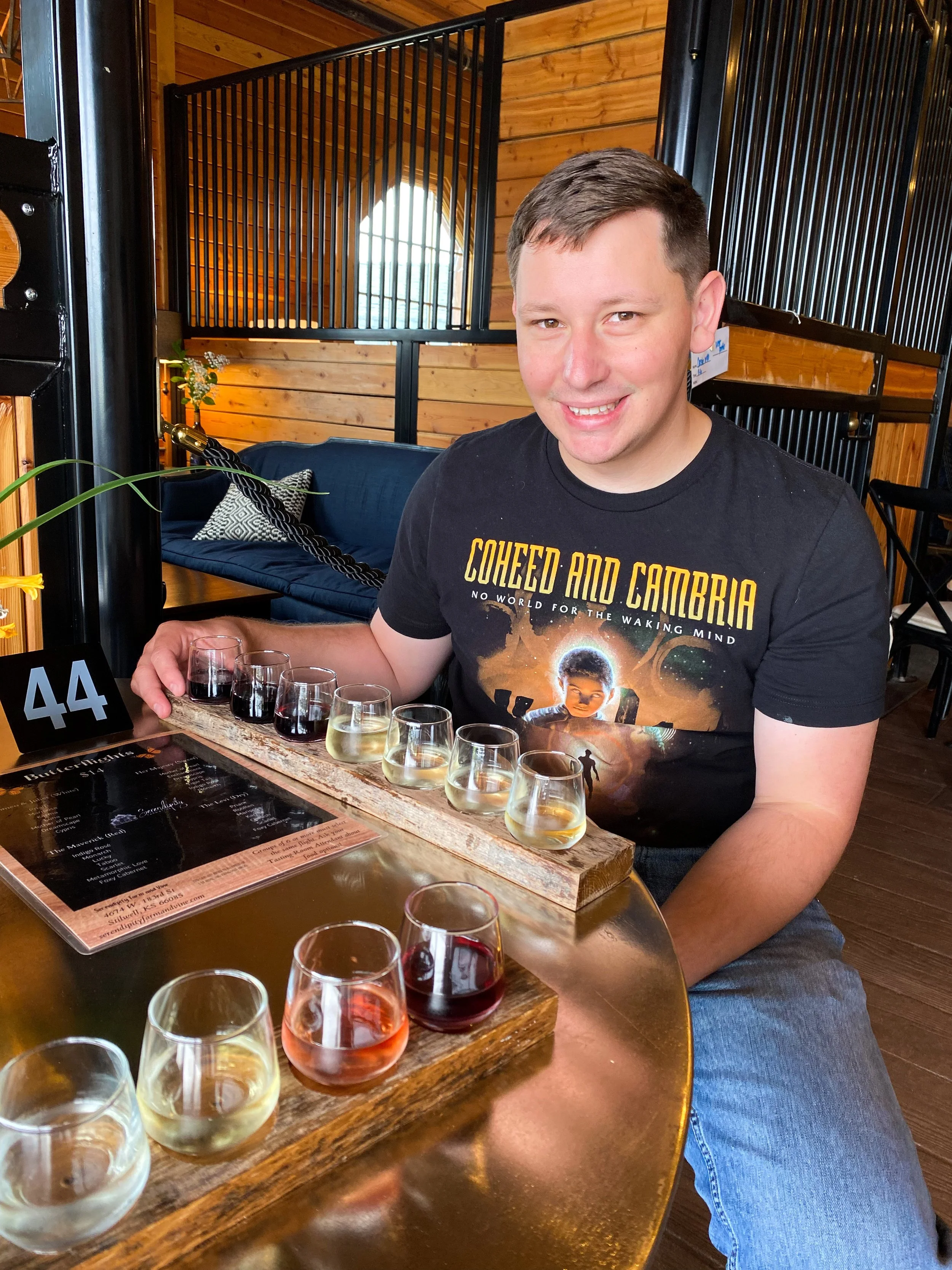 Saturday Kyle had to work. So our adventures continued Sunday morning when we woke up bright and early to head to Serendipity Farm and Vine, located in Stillwell, KS, almost 3 hours away from Wichita in the Kansas City area. The main building is an old barn that they have fixed up and turned into a coffee shop, tasting room, and stables with couches that are available to rent for your party.