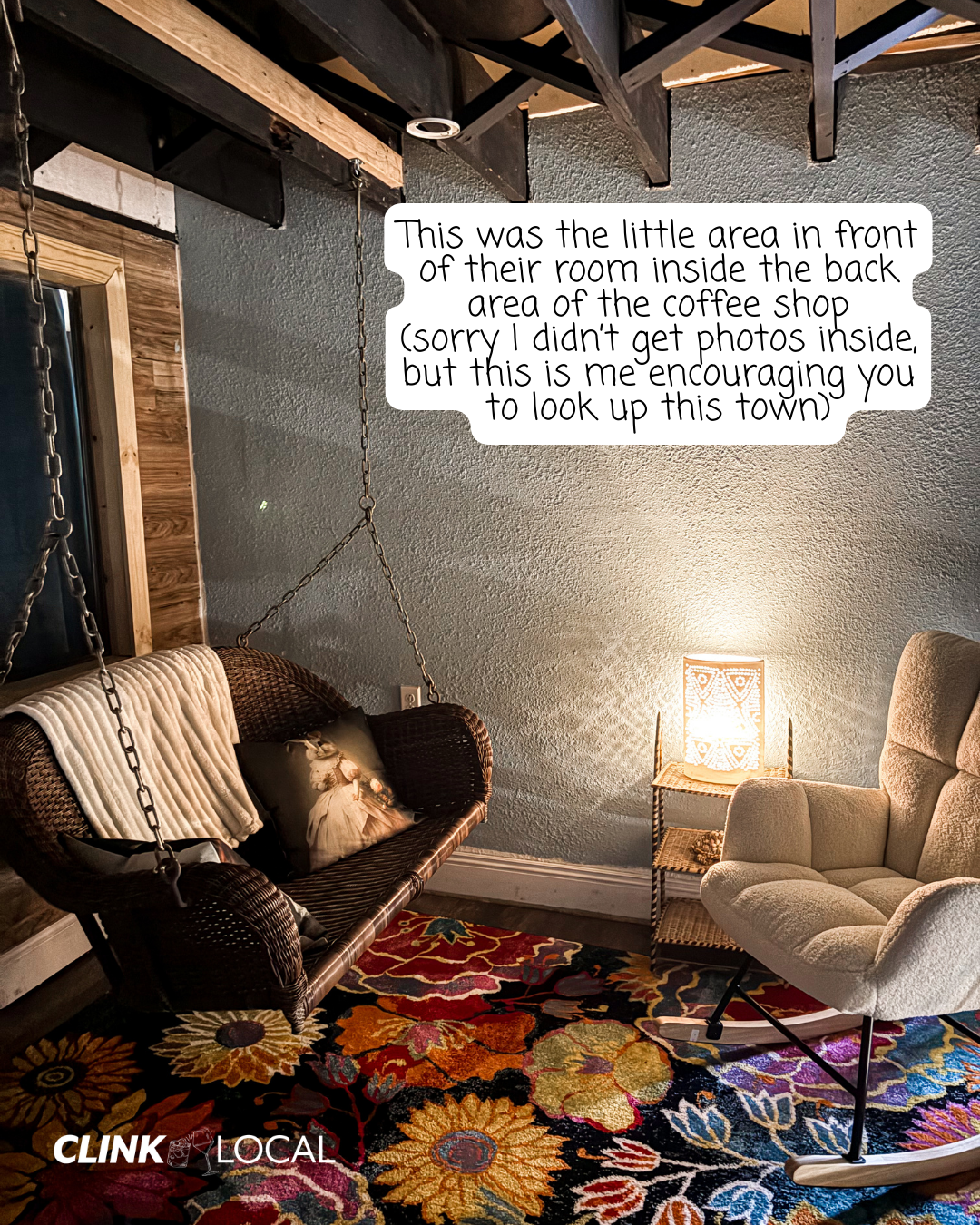 Kyle’s parents stayed at the BnB above the coffee shop, River & Rail Coffee.